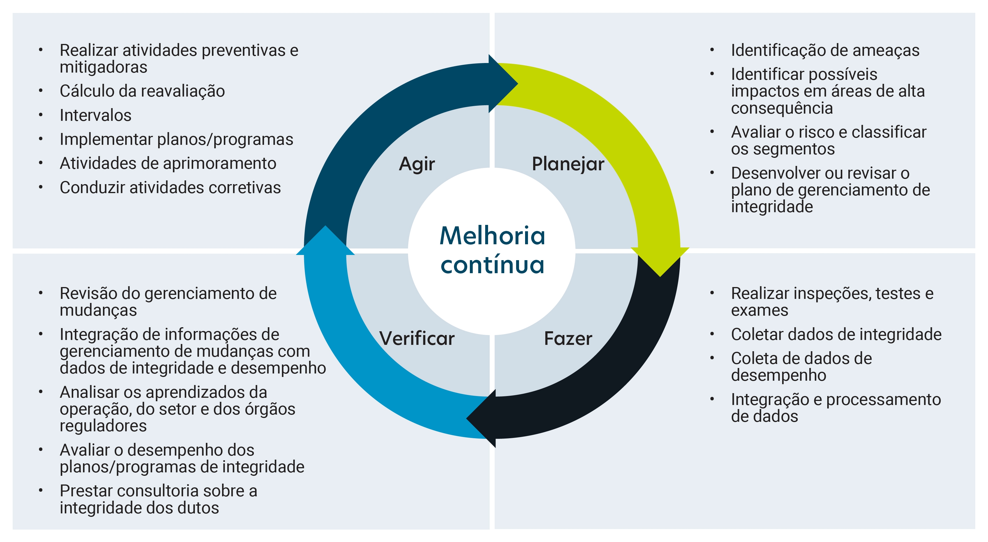O gráfico abaixo demonstra nossa abordagem comprovada para o gerenciamento da integridade dos ativos: